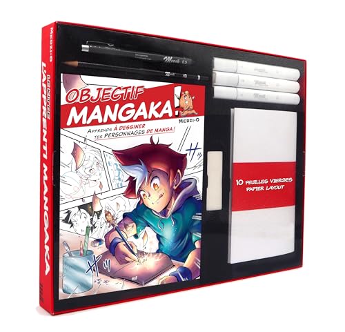 Le kit de l'apprenti mangaka - Tout pour créer ses premiers personnages mangas: Coffret avec 10 feuilles de papier layout, 1 feutre à alcool noir, 1 ... 1 fineliner, 1 crayon graphite et 1 gomme