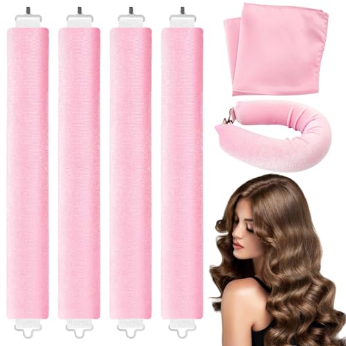 Heatless Curls band papiljotter över natten utan värme för långt hår | Curler hårband mjukt för sömn för stora lockar set inkl. 2 x hårsnoddar + 1 x hårklämma (rosa)