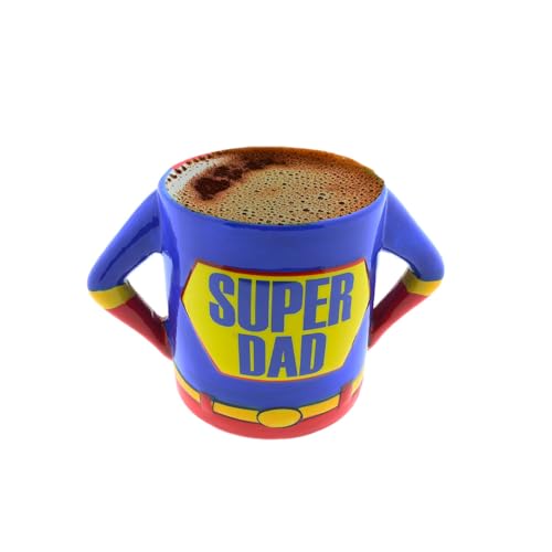 Avilia Superhjälte te te och kaffe mugg för pappa - mugg med Super Dad-design idealisk för fars dagspresent, keramik, 18 x 11 cm, 450 ml, röd och blå