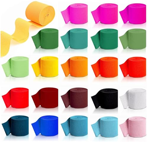 24 rullar dekorativt kräppapper, 4,5 cm x 10 m kräppapper för att dekorera födelsedag/bröllop/fest, crepon pappersdekoration är gjord av slitstarkt papper, pappersbanderoll (24 färger)
