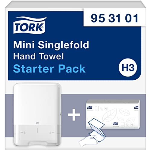 Tork Mini Starter Pack enkelvikta handdukar 953101, Image Design - H3 pappersdispenser i Elevation Design + påfyllning av handdukspapper (250 ark) - smal, hygienisk, vit