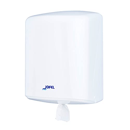 Jofel - Pappersdispenser i spole upp till 205 mm kontinuerlig veke, speciell spole för utmatning av bascenter, maximal hygien, ABS-skal, Azur AG40000, vit