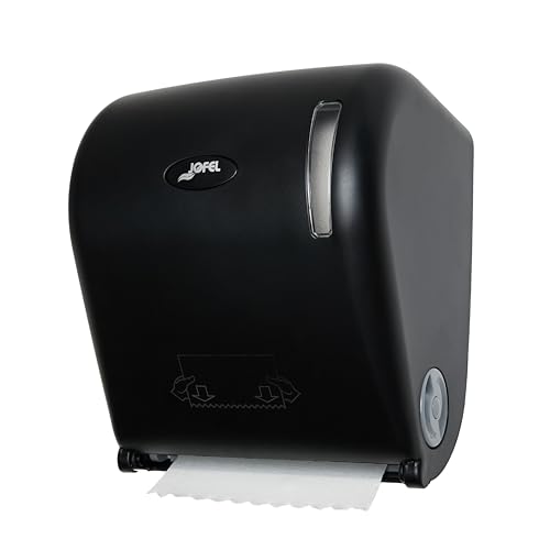 Jofel - AG65600, automatisk pappersdispenser, pappersdispenser kontinuerlig rulle, tillverkad av svart ABS, papper 220 mm bred, 200 mm chuck ø 35/45 mm