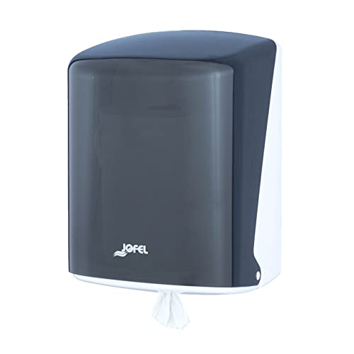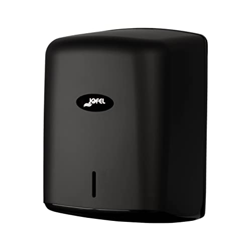 Jofel - Pappersdispenser i rulle upp till 205 mm kontinuerlig säkring, specialrulle för dispensering vid mitten av basen, maximal hygien, ABS-hölje, AG47600 värde, svart