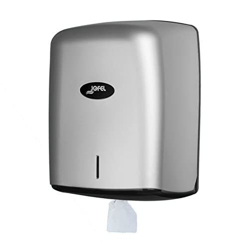 Jofel - Pappersdispenser i rulle upp till 205 mm kontinuerlig säkring, specialrulle för dispensering genom mitten av basen, maximal hygien, ABS-hölje, AG47300, Silver