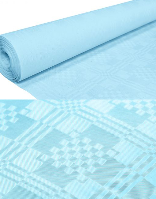 8 meter Baby Blå Pappersduk på Rulle med Damastmönster