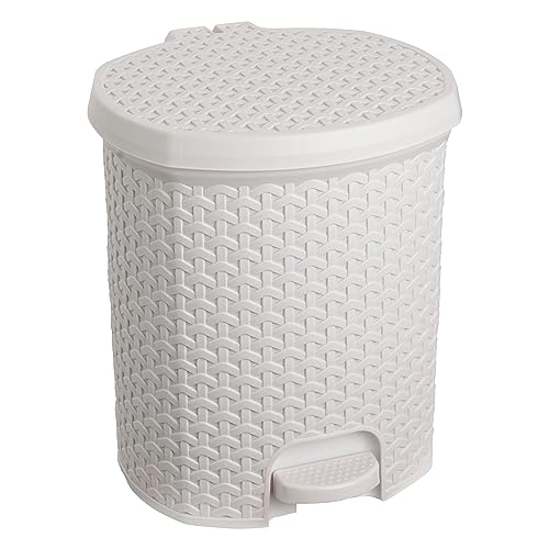 keeeper Multipurpose soptunn/papperskorg, med lock, rattan design, 5,5L-kapacitet, storlek 22,5x24x26 nordisk vit