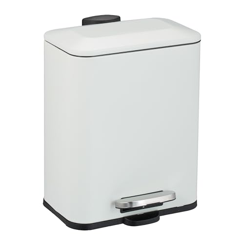 Relaxdays Papperskorg Badrum Fotpedal 5L, Löstagbar Invändig Hink Korg och Dämpat Lock, Matt Strykjärn, Vit