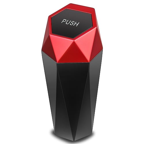 DNA MOTORING Mini bil bil papperskorg med avtagbart lock, läckagesäker mini soptunna för bil hemmakontor, svart/röd, ZTL-OD-01-RD