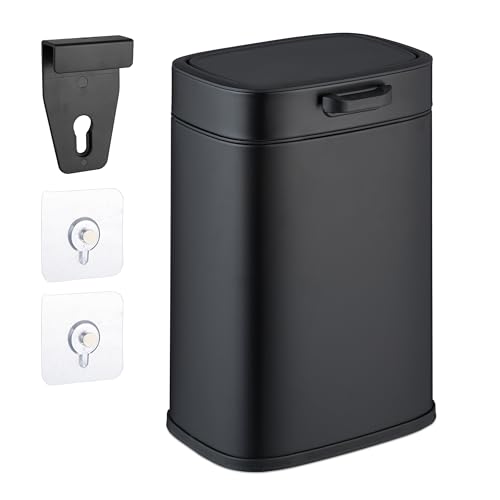 Relaxdays Hängande sophink, 5 liter, för väggmonterad papperskorg inomhus, soptunna kök, badrum, svart, järn, 29 x 21 x 18 cm