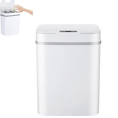 WMLBK Automatisk papperskorg 12 liter papperskorg med rörelsesensor automatisk soptunna med lock kontaktlös papperskorg för kök, badrum, badrum eller kontor (vit)