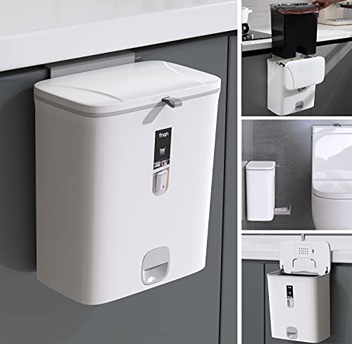 Mustorn Papperskorg hängande kök, 7 liters papperskorg kök med lock köksavfallskorg väggmontering liten papperskorg kök med krok, luktfri (vit)