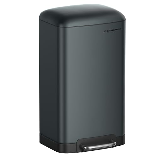 SONGMICS Papperskorg 30 L, med stålpedal, innerhink och lock, handtag, mjuk stängning, hermetisk, för kök, vardagsrum, antracitgrå LTB01GS