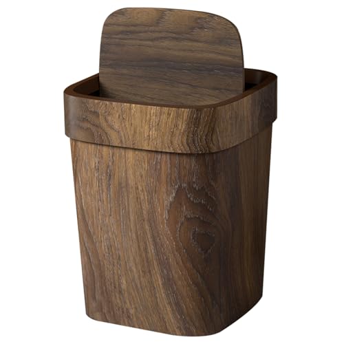 Ericetion Trä kök papperskorg med svänglock trä soptunna dekorativ avfallskorg soptunna kökskorg för hotell badrum kontor