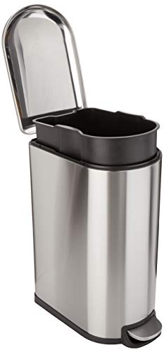 Amazon Basics 40 l/10,5 gallon papperskorg för badrummet med rörpedal av stål – försiktigt stängande med lock, för kök, badrum eller kontor, rektangulär, rostfritt stål, silver