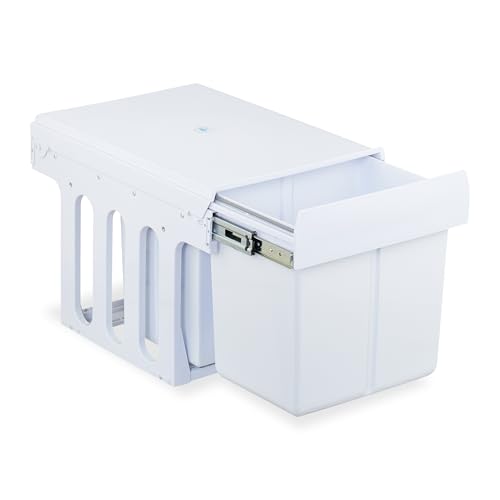 Relaxdays Inbyggd papperskorg för kök, 3 lådor, 20 liter och 10 liter, HLP : 41,3 x 34 x 51,8 cm, vit