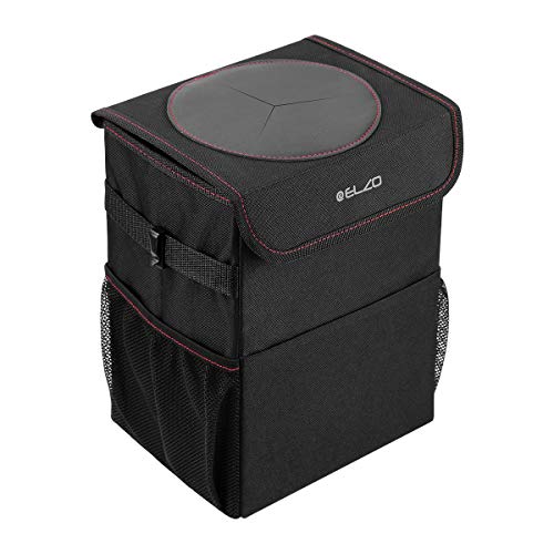 ELZO Papperskorg med lock för bil, 9 l, hopfällbar bilsoptunna med 3 sidoförvaringsfickor, vattentät skräpväska i oxfordtyg för bil, resor och camping