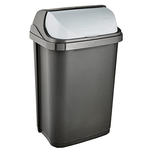 Rotho Paso papperskorg 20l med lock, plast (PP) BPA-fri, silver metallic, 20 liter (29,3 x 26,6 x 45,7 cm)