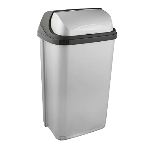 Rotho Twist Papperskorg 25 l med lock, plast (PP) BPA-fri, silver metallic, 25 l (33,3 x 25,2 x 47,6 cm)