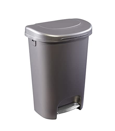 Rubbermaid Classic 13 gallon premium step-on papperskorg med lock och pedal i rostfritt stål, svart avfallskorg för kök