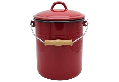 KRÜGER Papperskorg med lock – stålsoptunna med emaljbeläggning och trähandtag – skär- och reptålig yta – hållbar och mångsidig användning (10 liter, röd)