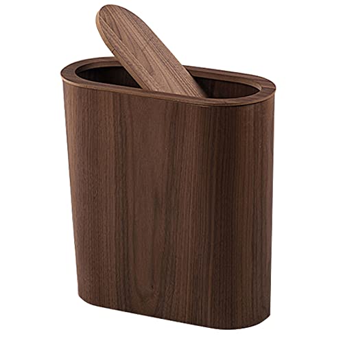 ZHZ-DT Sovrumskorg, liten soptunna gjord av trä | smal papperskorg med lock för badrum kök och kontor återvinning avfallsburk soptunna, rustik finish (färg: Brun)