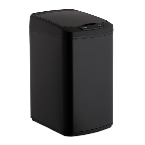 Relaxdays Sensor papperskorg 12 l, fyrkantig papperskorg med lock och innerhink, kök och badrum, automatisk papperskorg, svart