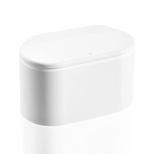 MONGTINGLU Mini papperskorg med lock, avtagbar liten sopkorg, liten soptunna i plast, pop-up bänkskiva, avfallsväska, papperskorg för badrum, kontor, kök, skrivbord (vit)