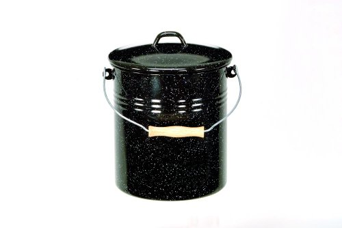 Papperskorg med lock, emaljerad, svart med vita stänk, 10 liter