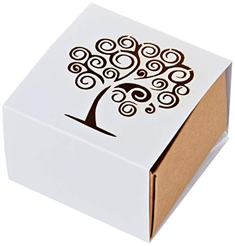 Mopec fyrkantig papperslåda livets träd för bröllop, vit med guld, en storlek, 25 stycken