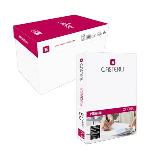 CASTERLI - 8 1 500-5 A4-folio, 2 500 vita ark, A4-papperslåda, 80 gr-papper, extra vit, multifunktionspapper för A4, 80 gsm (A4, 2 500 ark)