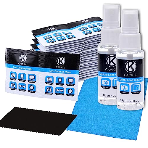 CAMKIX Lins- och skärmrengöringssats - 2 sprayflaskor, 2 mikrofiberdukar (storlek L + S 50 individuellt inslagna våta pappersnäsdukar - för glasögon, kameralinser, telefon/surfplatteskärmar etc