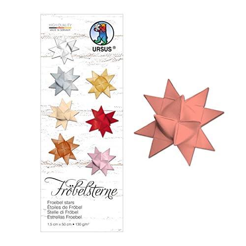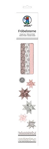 Ursus 3487000F – pappersremsor för grovstjärnor rosé/ljusgrå/brun, tillverkade av högkvalitativt pysselpapper, 60 remsor i 2 olika storlekar för ca 15 stjärnor, hantverksklassiker för jul