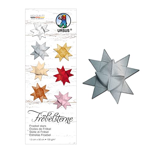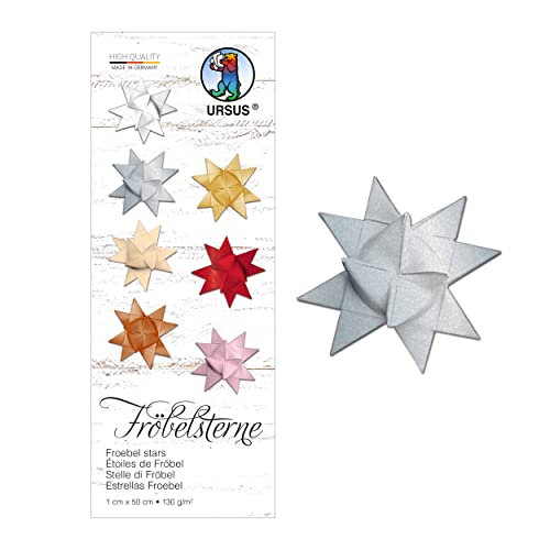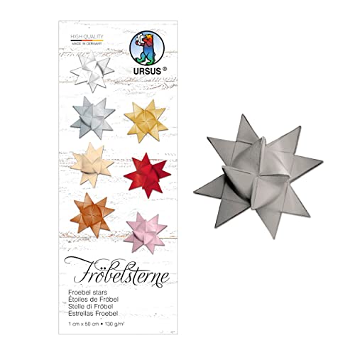 Ursus 3200089 – pappersremsor för frovstjärnor, silver, tillverkade av tonritpapper 130 g/kvm, ca 1 x 50 cm, 100 remsor för ca 25 stjärnor, hantverksklassiker för jultid