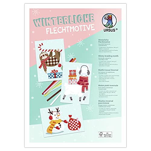 Ursus 28240099F – vinterliga, pysselset för barn med 12 färgglada flätmotiv (A4) och 160 pappersremsor, för kreativ sysselsättning