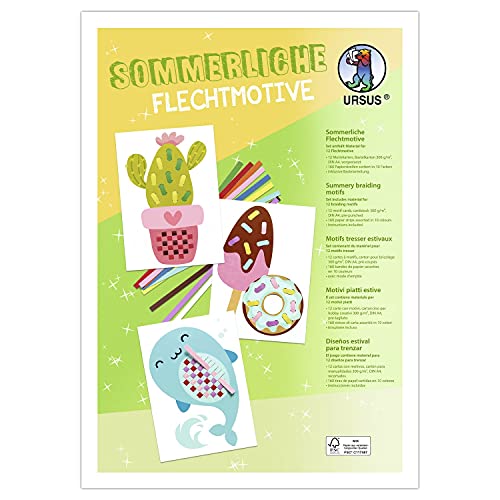 Ursus 28230099F Sommarpysselset för barn med 12 färgglada flätat motiv (A4) och 160 pappersremsor, för kreativ sysselsättning