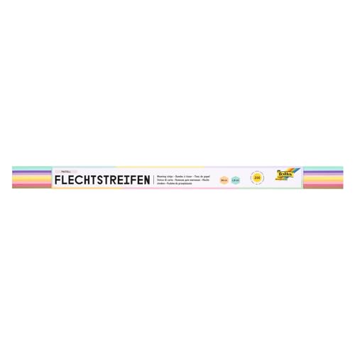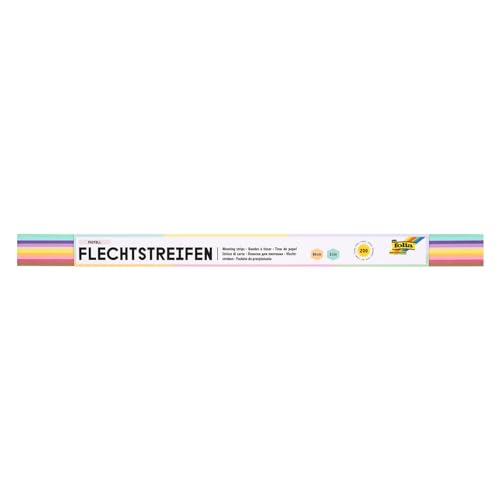 folia 70320 – Flätningsremsor, PASTELL av papper, 200 stycken i 10 olika pastellfärger, 50 x 2 cm, pappersremsor för flätning och veck