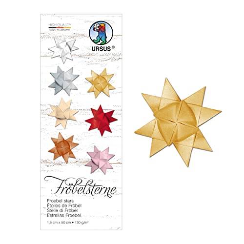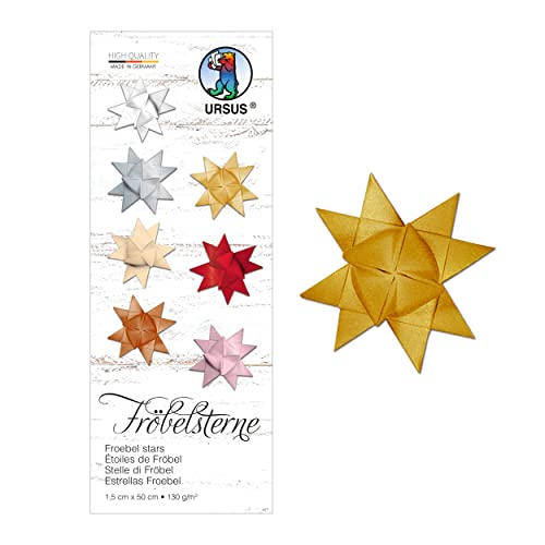 Ursus 3210078 – pappersremsor för frovstjärnor, matt guld, gjorda av tonritpapper 130 g/kvm, ca 1,5 x 50 cm, 80 ränder för ca 20 stjärnor, hantverksklassiker till julsäsongen