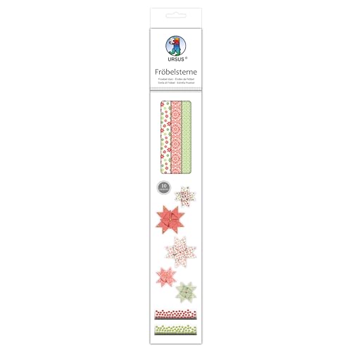 Ursus 3470000F pappersremsor för Froebel stjärnor, röd/grön, tillverkad av högkvalitativt FSC mixpapper, 60 remsor i 2 olika storlekar för ca. 15 stjärnor, hantverksklassiker för jul