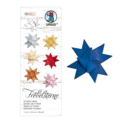 Ursus 3200039 – pappersremsor för frostiga stjärnor, kungsblå, gjorda av tonritpapper 130 g/kvm, ca 1 x 50 cm, 100 remsor för ca 25 stjärnor, hantverksklassiker för jultid