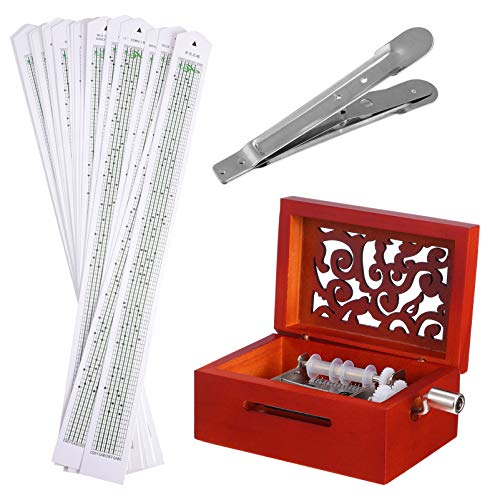 Barnsport Vintage träsnidad mekanism Musiklåda med pappersremsor DIY Wind Up Music Box Desktop Ornament Present till festival Födelsedag Jubileum Röd DIY-present (Color : Red)