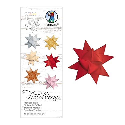 Ursus 3200022 – pappersremsor för frovstjärnor, rubinröd, gjorda av tonritpapper 130 g/kvm, ca 1 x 50 cm, 100 remsor för ca 25 stjärnor, hantverksklassiker för jultid