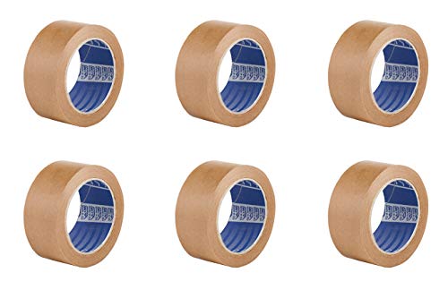 m-office papperstejp kraftpapper, tejp för kartongförpackningar, frakt, flyttar och hantverk, förpackningstejp, brunt kraftpapper tejp (6 st, 50 mm x 50 m)