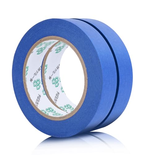 AiQInu 2 rullar blå maskeringstejp, färg papperstejp, blå tejp, professionell maskeringstejp, blå målartejp, 24 mm x 50 m