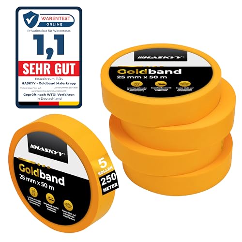 HASKYY guldband målningstejp 5 x målningstejp 30 mm x 50 m professionell maskeringstejp Washi tejp guld papperstejp självhäftande