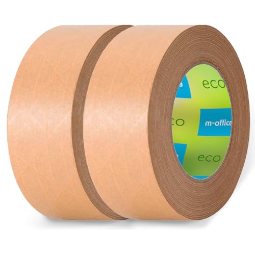 m-office papperstejp kraftpapper, tejp för kartongförpackningar, frakt, flyttar och hantverk, förpackningstejp, brunt kraftpapper tejp (2 st, 50 mm x 50 m)