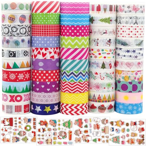 VIPNAJI 60 Rolls Washi Tape Set, maskeringstejp, 15 mm bred gör-det-själv papperstejp, dekorativ tejp för pyssel, för scrapbooking gör-det-själv hantverk hantverkare förskönar bullet journals planerare etc