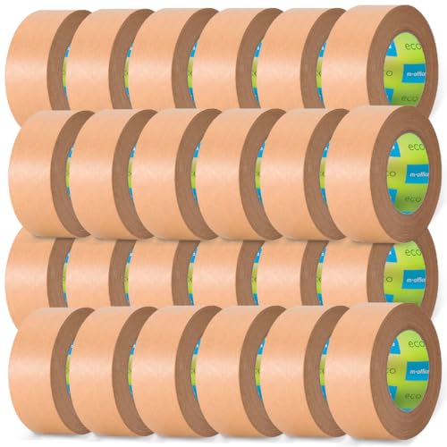 m-office papperstejp kraftpapper, tejp för kartongförpackningar, frakt, flyttar och hantverk, förpackningstejp, brunt kraftpapper tejp (24 st, 50 mm x 80 m)