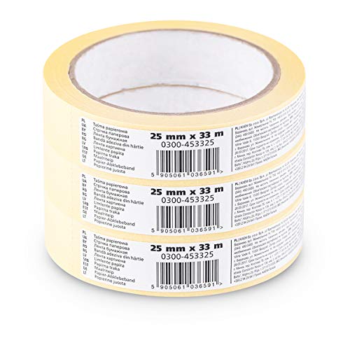 Scley 3 st maskeringstejp/krepptejp 25 mm × 33 m Serie 545, papperstejp för målare, maskeringstejp med gummilim