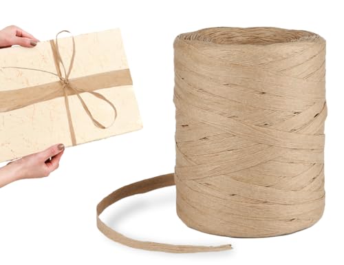 AOYEGIC Raffia-tejp, raffia-garn för virkning, förpackningssnöre, naturlig raffia-papperstejp, papperssnöre, raffia-tejp, presentband, för hantverksprojekt (200 m)